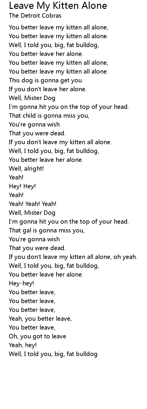 If you don't leave my kitten all alone, oh yeah. |