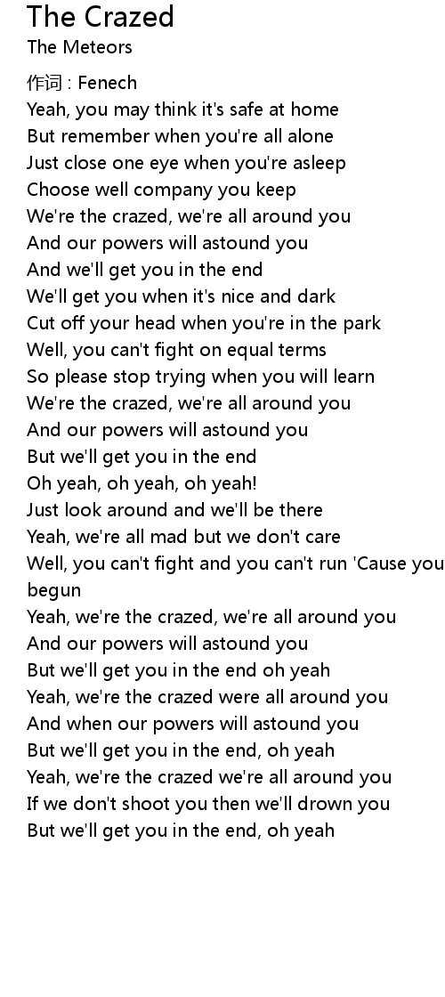 | Yeah, we're the crazed, we're all around you | |
