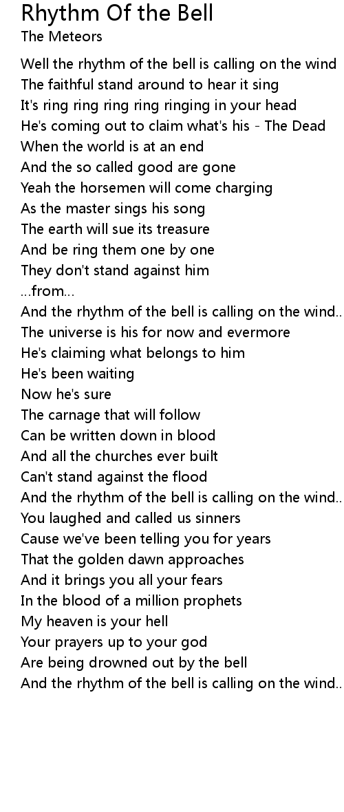 | Well the rhythm of the bell is calling on the wind | |