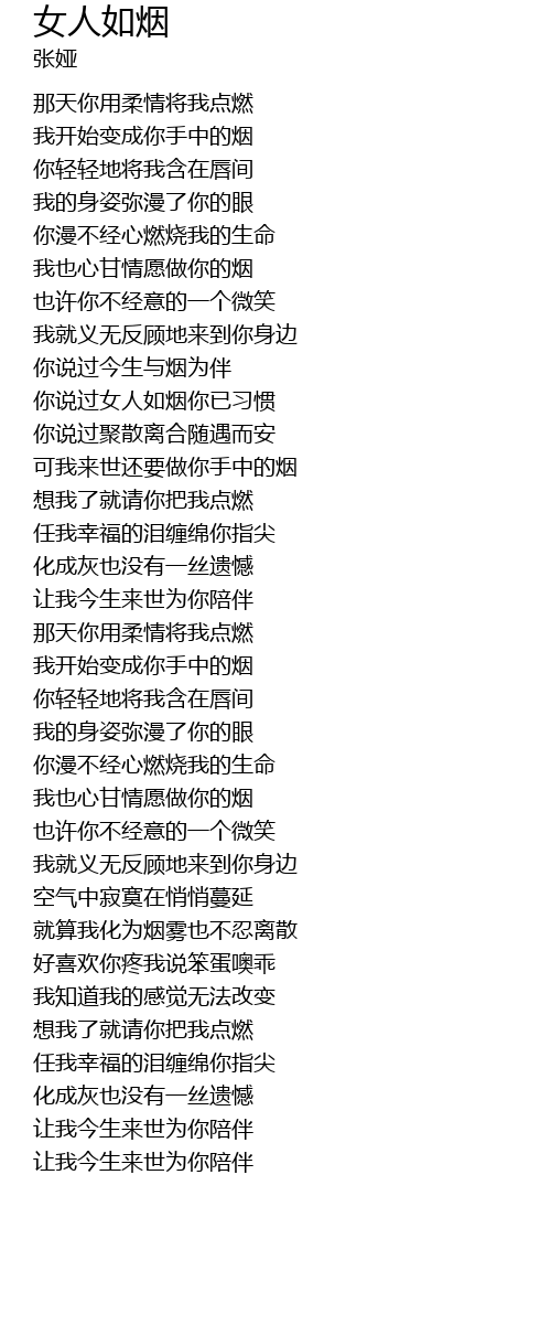 | 我也心甘情愿做你的烟 | |