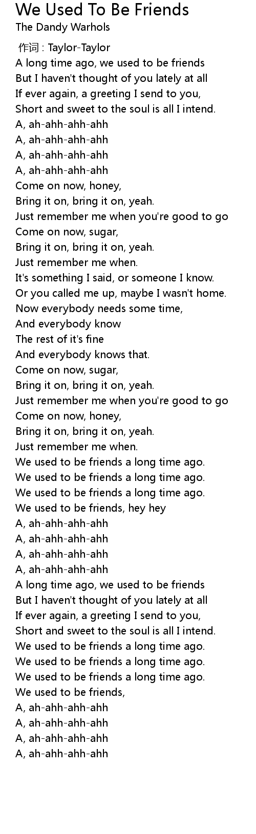 | [02:49.690] | We used to be friends a long time ago. |
