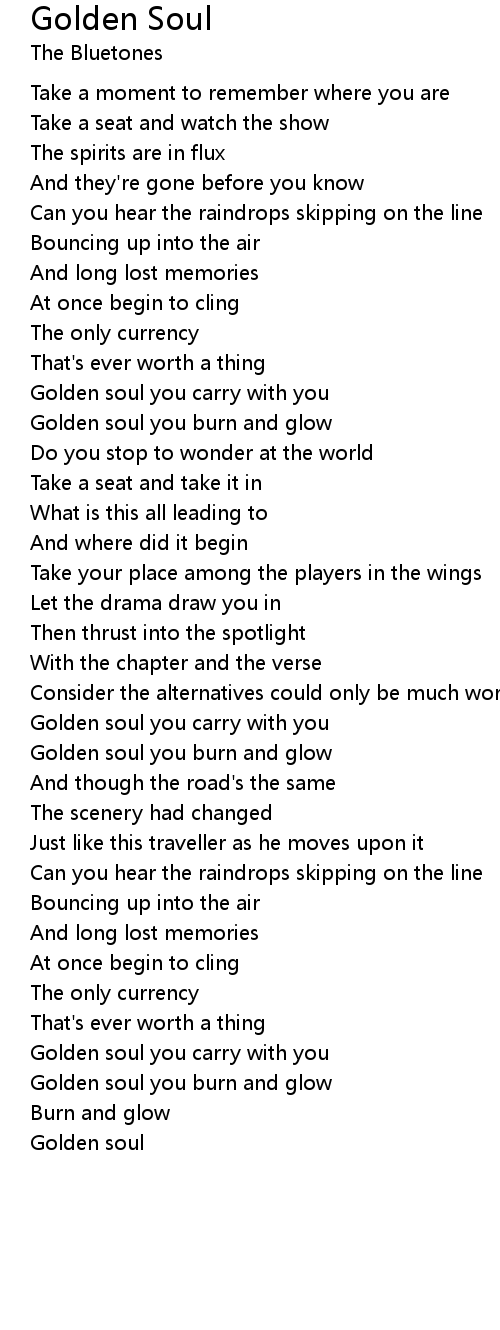 Golden soul you carry with you |