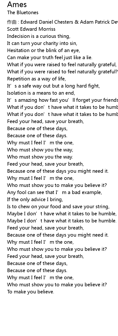 | zuò qǔ : Edward Daniel Chesters Adam Patrick Devlin Mark James Morriss Scott Edward Morriss | |