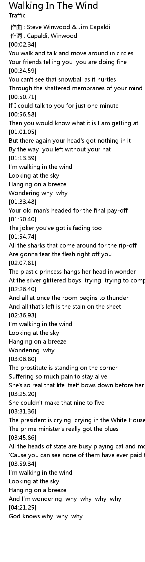 | [00:00.678] | 作词 : Capaldi, Winwood |
