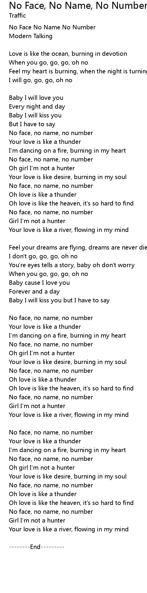 No Face No Name No Number |