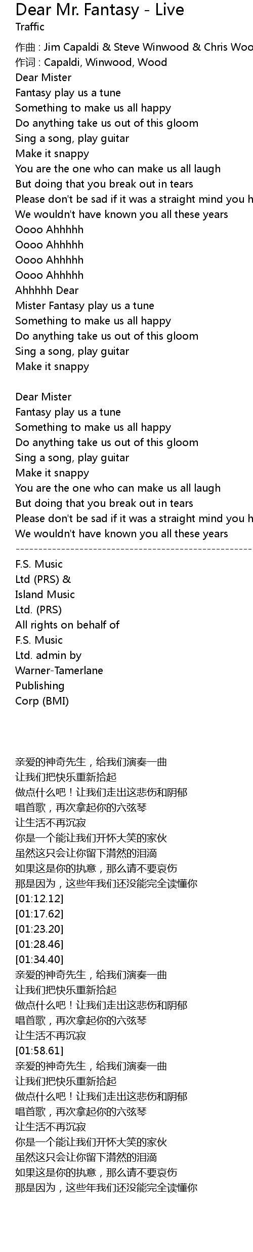 | zuò qǔ : Jim Capaldi Steve Winwood Chris Wood | |