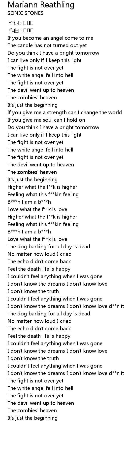 | [02:20.92] | I don't know the dreams I don't know love d**n it |
