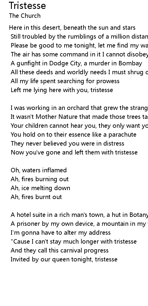 "Cause I can't stay much longer with tristesse |