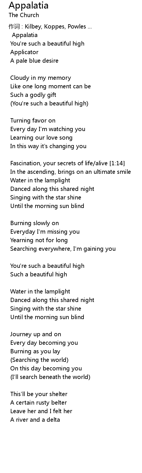 | 作词 : Kilbey, Koppes, Powles ... | |