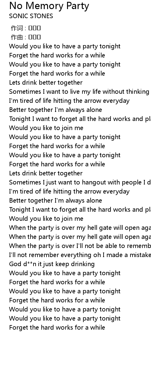 | [01:48.18] | Tonight I want to forget all the hard works and play with all my heart |