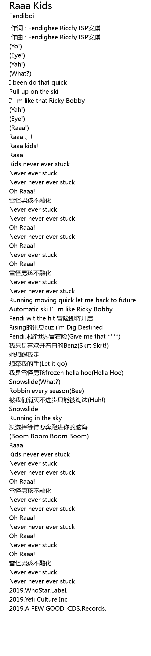 | [00:00.000] | 作词 : Fendighee Ricch/TSP安琪 |