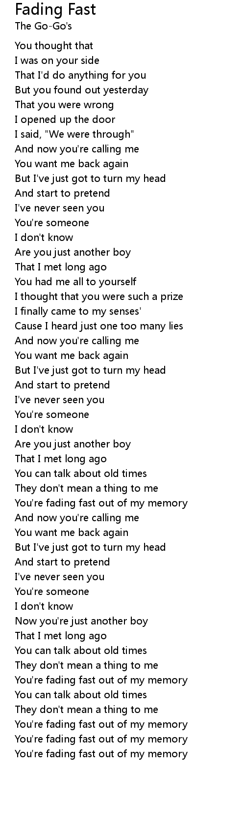 You're fading fast out of my memory |