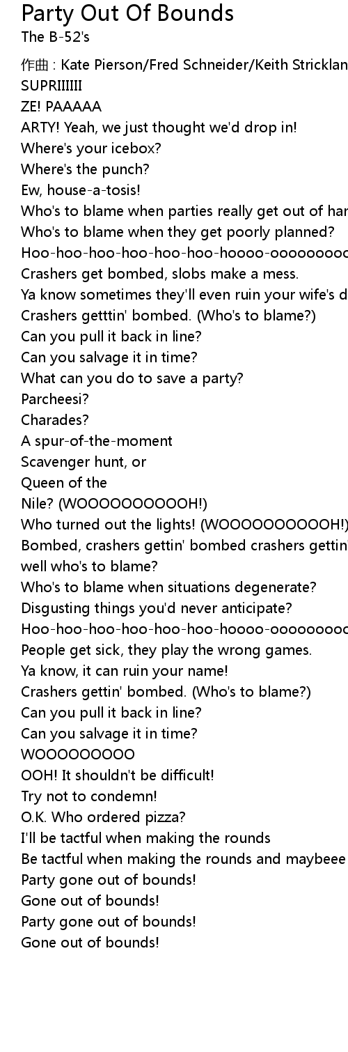 | Song | Party Out Of Bounds |