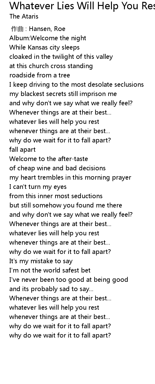| [00:57.58] | whatever lies will help you rest |
