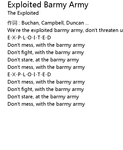 | We' re the exploited barmy army, don' t threaten us | |
