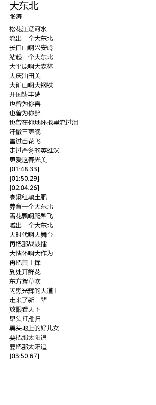 | [02:25.71] | hǎn chū yí gè dà dōng běi |