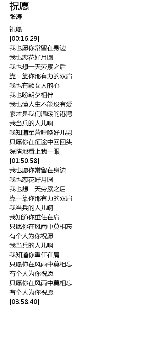 | [00:01.38] | 祝愿 |