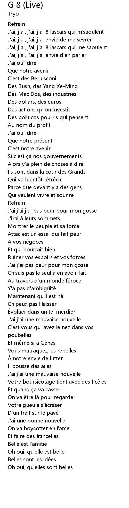 | J'ai, j'ai, j'ai, j'ai 8 lascars qui m'saoulent | |