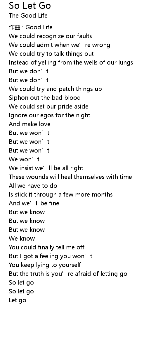 | But the truth is you’re afraid of letting go | |