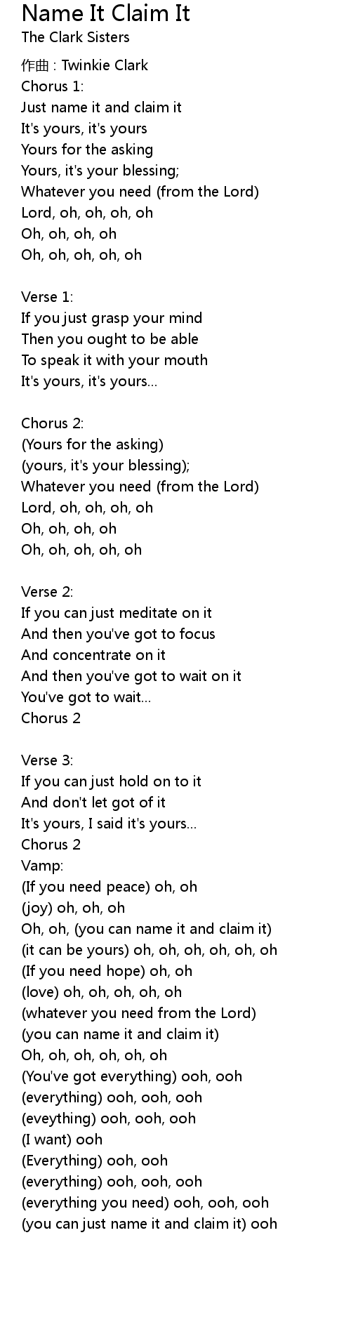 | Oh, oh, you can name it and claim it | |