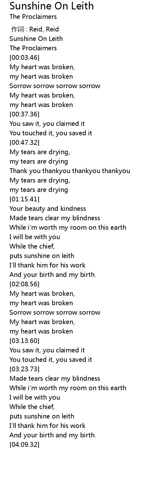 | [01:48.55] | puts sunshine on leith |
