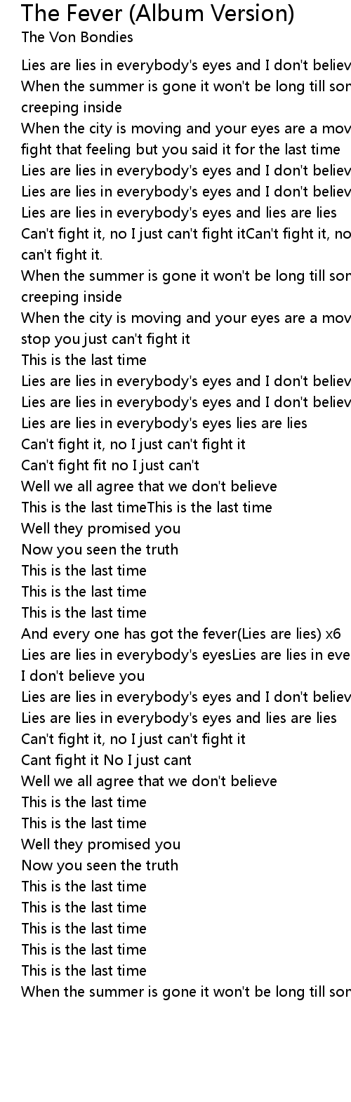 And every one has got the fever(Lies are lies) x6 |