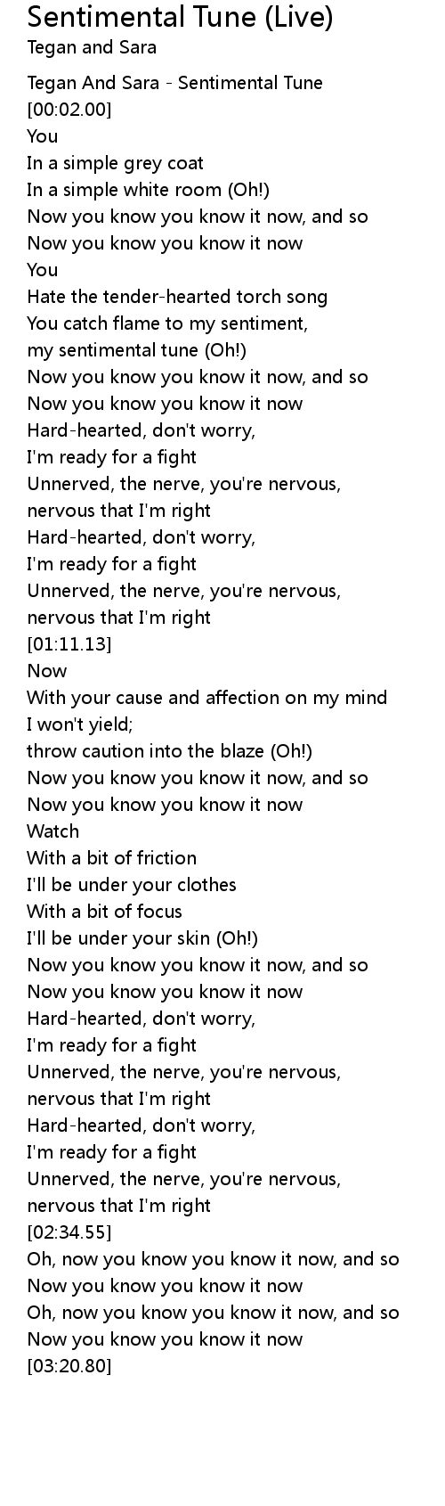 [00:00.00] Tegan And Sara - Sentimental Tune