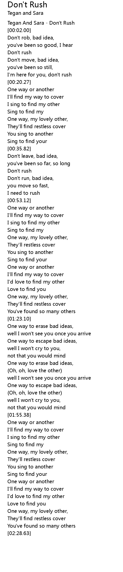 Tegan And Sara - Don't Rush |