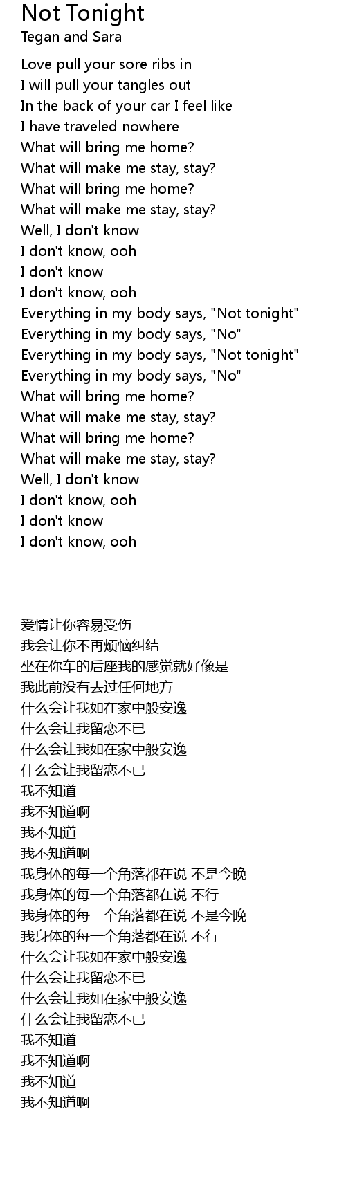 Everything in my body says, "Not tonight" |