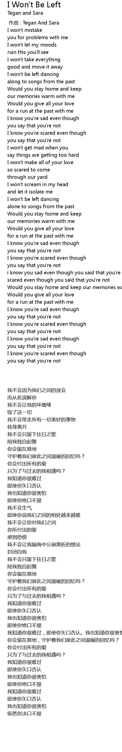 | [00:00.00] | 作曲 : Tegan And Sara |