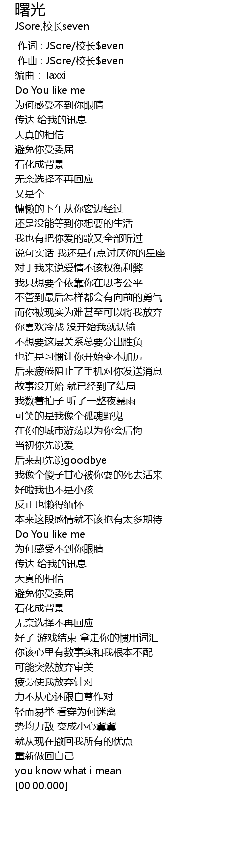 | [00:00.000] | 作曲 : JSore/校长$even |