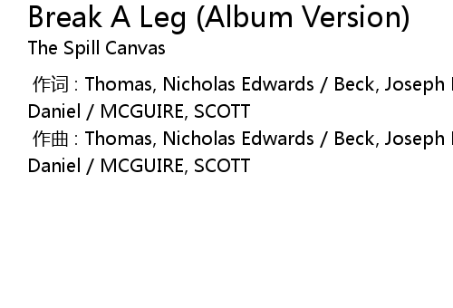 | [00:00.000] | zuo qu : Thomas, Nicholas Edwards Beck, Joseph Dean Ludeman, Daniel MCGUIRE, SCOTT |