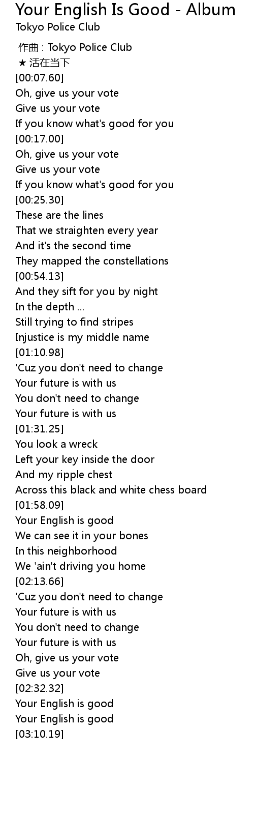 | [00:00.00] | zuò qǔ : Tokyo Police Club |