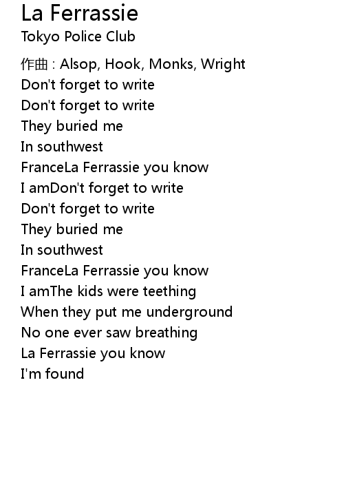 | 作曲 : Alsop, Hook, Monks, Wright | |