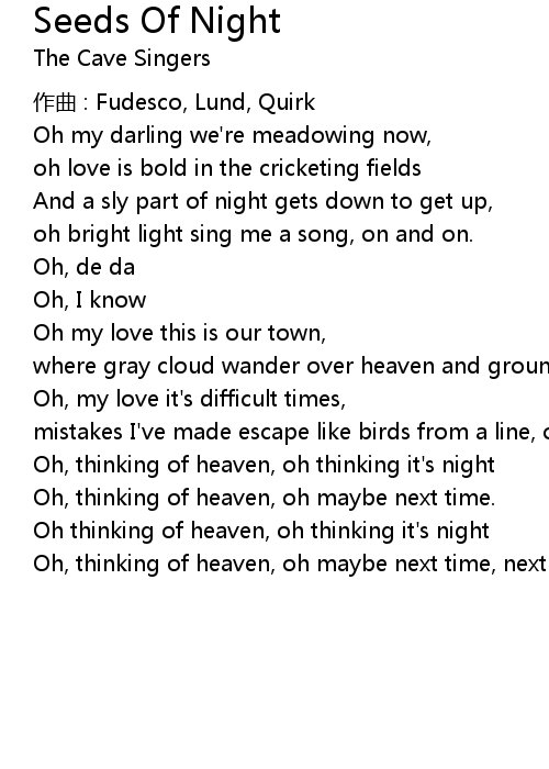 | Oh, thinking of heaven, oh thinking it's night | |
