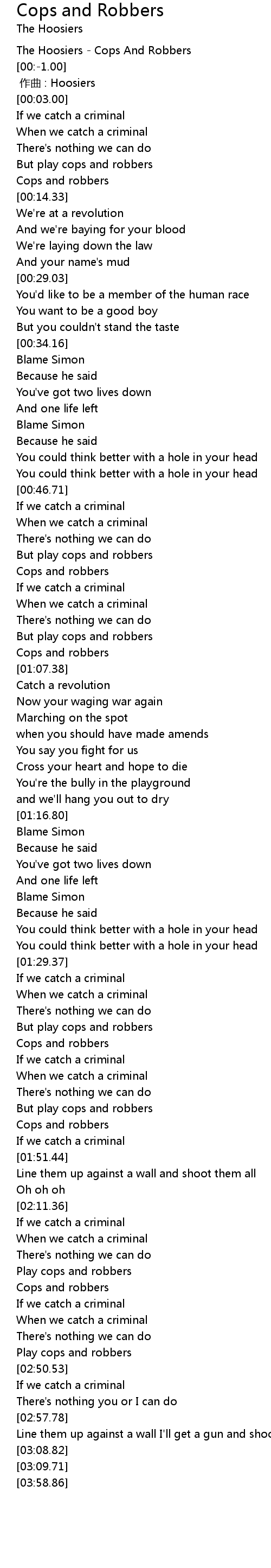 | [01:38.73] | Cops and robbers |