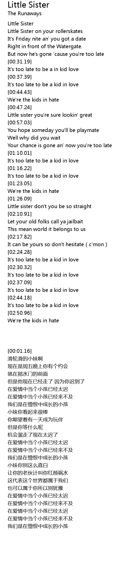 | [00:01.16] | Little Sister |