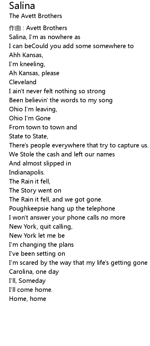 | Salina, I' m as nowhere as | |