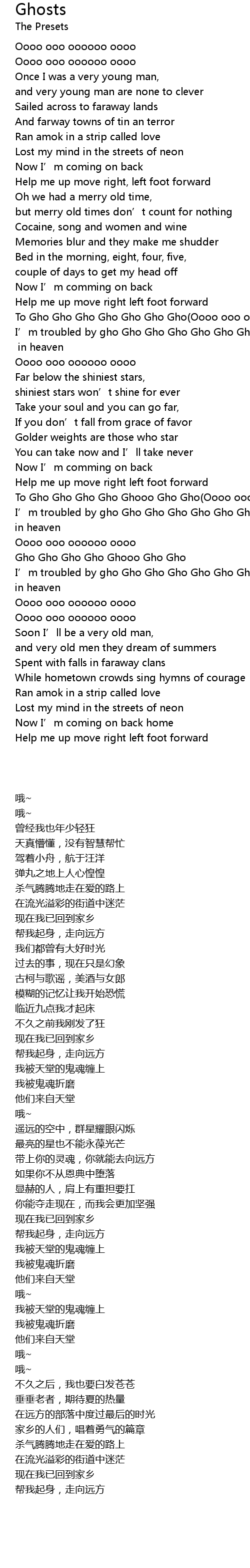 | [01:28.150] | I' m troubled by gho Gho Gho Gho Gho Gho Ghosts |