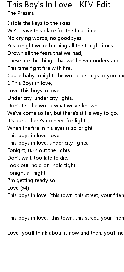 I. This Boys in love, |