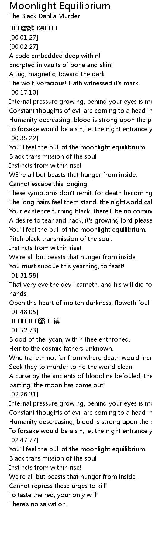 | [01:37.94] | Open this heart of molten darkness, floweth foul rivers of the damned. |