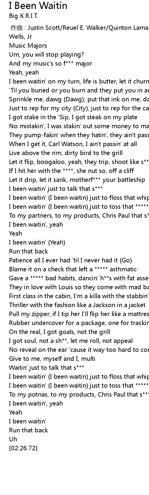 | [00:54.30] | I been waitin' (I been waitin) just to toss that ***** |