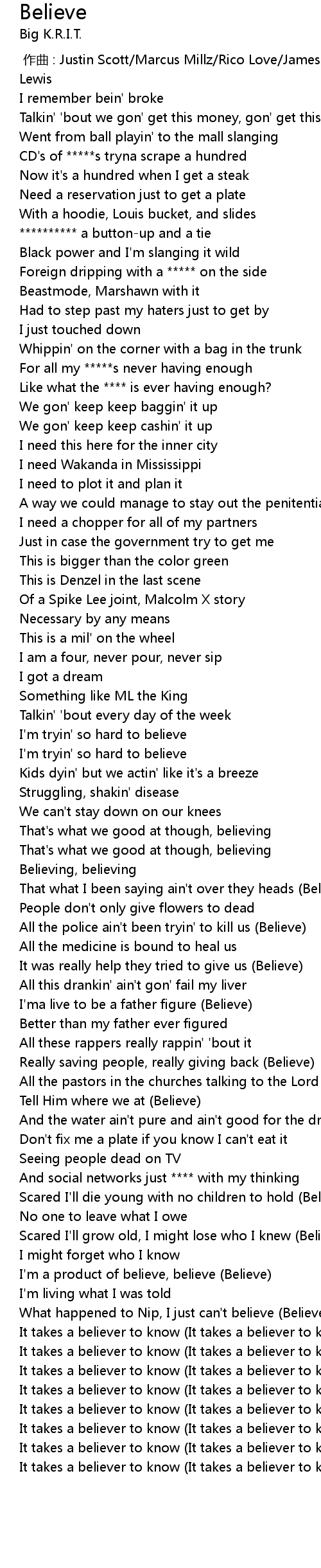 | [01:47.37] | All the police ain't been tryin' to kill us (Believe) |