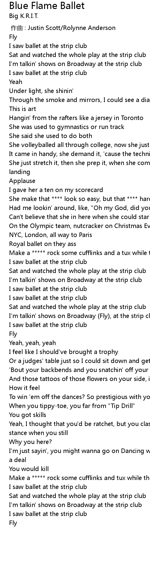 | [00:24.25] | I saw ballet at the strip club |