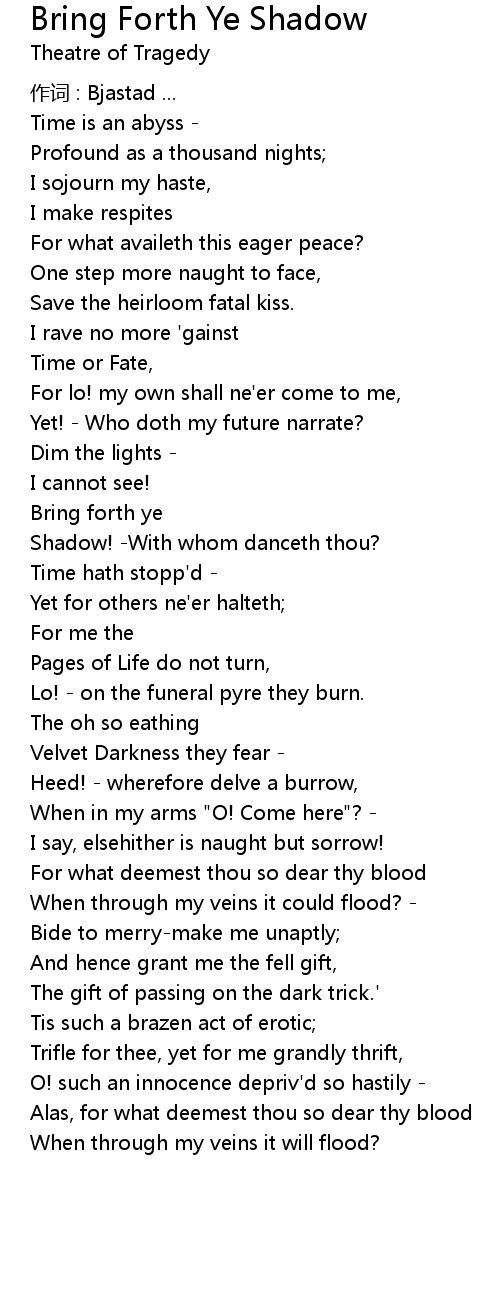 | Song | Bring Forth Ye Shadow |