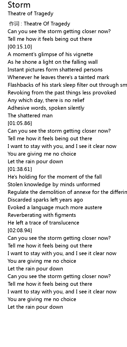 | [00:00.00] | zuò cí : Theatre Of Tragedy |