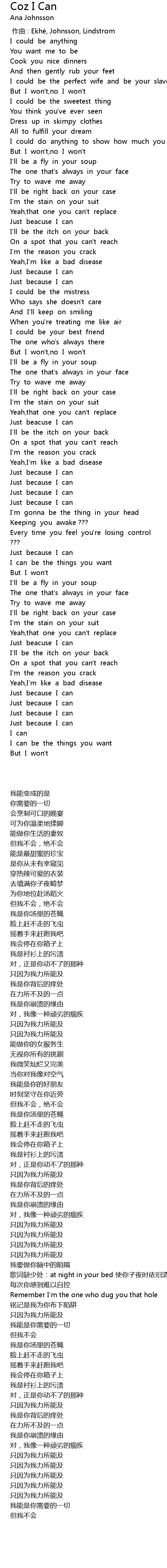 | [00:14.886] | But I won't,no I won't |