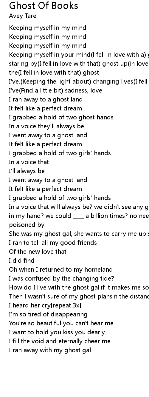 Keeping myself in your mind(I fell in love with a) ghost gal.(I'm gonna keep it) staring by(I fell in love with that) ghost up(in love with the past) says that the(I fell in love with that) ghost |