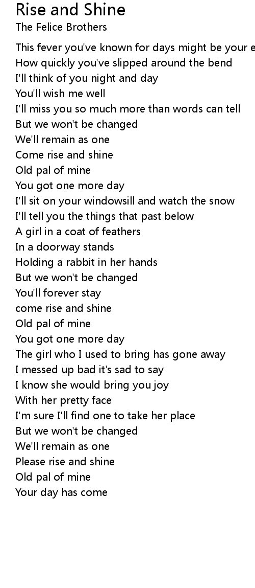 come rise and shine |