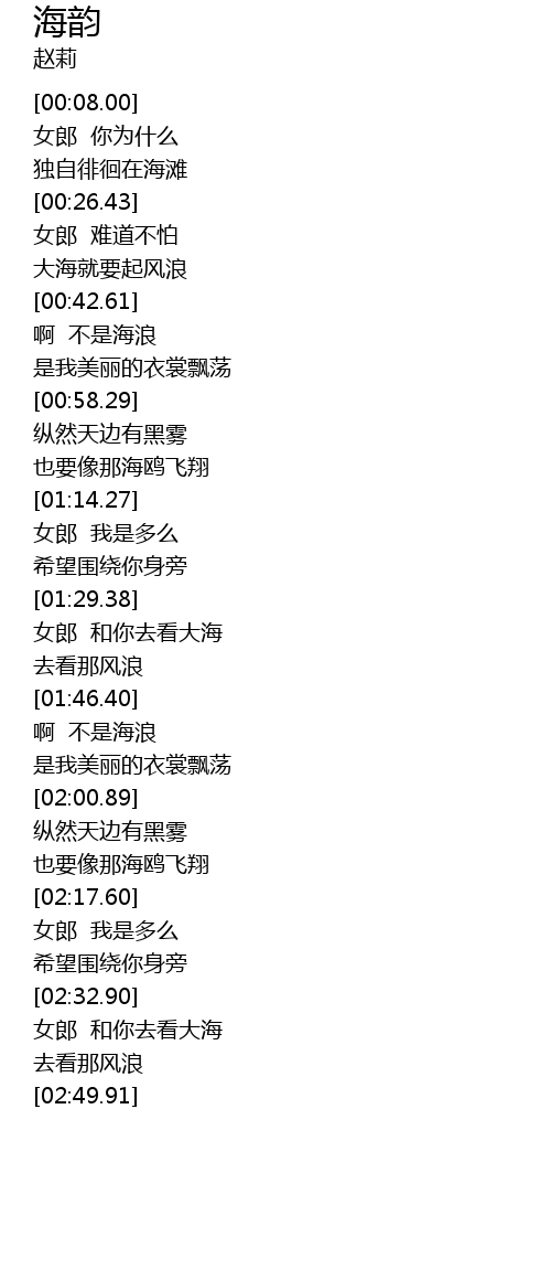 | [02:34.45] | nǚ láng hé nǐ qù kàn dà hǎi |